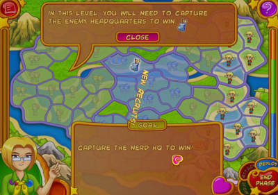 游戏中包括了不少的小游戏,主要玩法还是和敌人的搏斗,抢回那些属于你的地盘,游戏开始还是比较简单的,无论你怎么派兵基本都是胜利,中后期开始变难,要动些脑筋了。