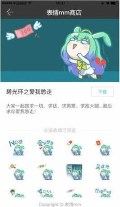 表情mm提供的表情云服务是为开发者提供了类似微信、QQ的表情商店。让App内置表情商店和网页嵌入分享功能一样简单,开发者可以通过SDK方式接入表情商店,省去自己开发表情商店的时间和精力,也省去表情内容设计的种种麻烦,而且不用花一分钱,轻松拥有免费·海量·正版的表情商店!