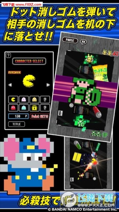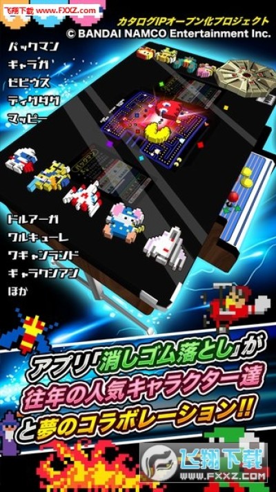 本作是 Bandai Namco人气 IP 公开化企画的参与作品之一,也是一款以全世界超过150万次以上下载的人气益智动作游戏为基础,并收录了包括吃豆人、小蜜蜂等 Namco 人气角色作为玩家消去目标的橡皮擦的益智动作游戏