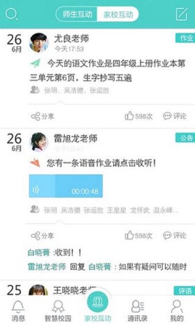 乐智翼校通是一个非常不错的家校互动平台,老师可以用它来管理自己的学生和在线给他们布置作业,而学生家长则可以通过它来随时掌握孩子们在学校的学习与生活情况,共同关注孩子们的成长,有需要的朋友可以在这里免费下载使用!