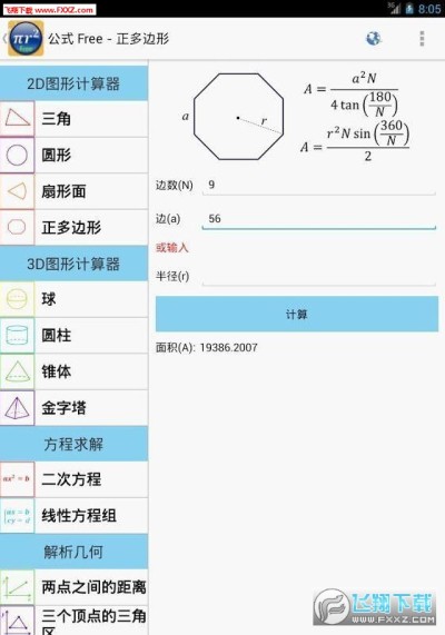 这个应用程序有很多工具来计算几何形状或方程组的根。用户还可以通过很多方式与朋友共享任何公式,如:电子邮件,短消息。