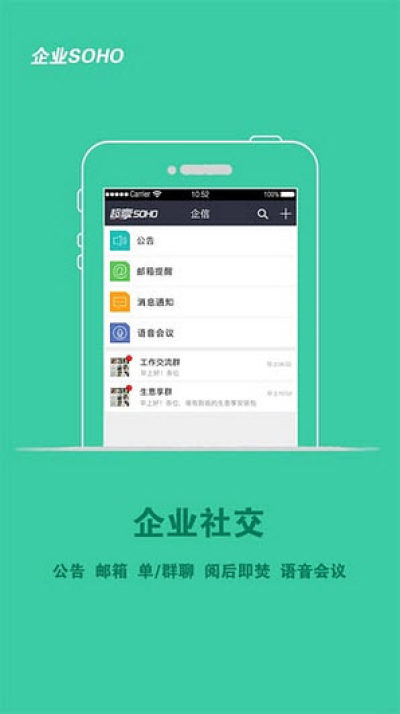 企信:私聊、群聊、语音会议、邮件、公告;