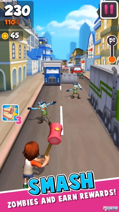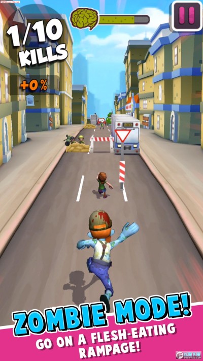 丧尸城跑酷(Undead City Run)是一款丧尸题材的跑酷游戏,游戏将故事发生的地点设置在了一座已经荒废的小镇之中,病毒的迅速蔓延让全镇的居民都变成了丧尸 ,而手持重武器前来镇压的军队也不幸落败,作为全村仅存的几名未感染者,玩家必须在丧尸的重重包围之中杀出一条血路成功出逃。而玩家自然也要在游戏中饰演指挥官与跑腿杂役的双重身份,帮助咱们的主人公顺利完成任务。