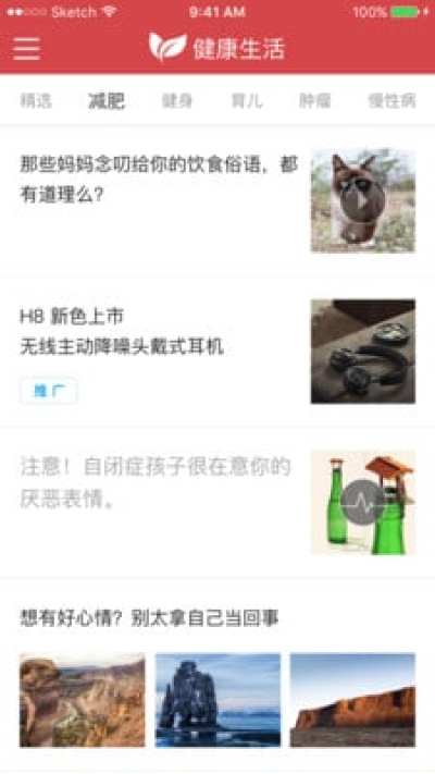 - 健康生活涵盖了包括:饮食、健身、心理、慢性病等多个分类,每天更新,更会根据你的阅读习惯为你精选内容;