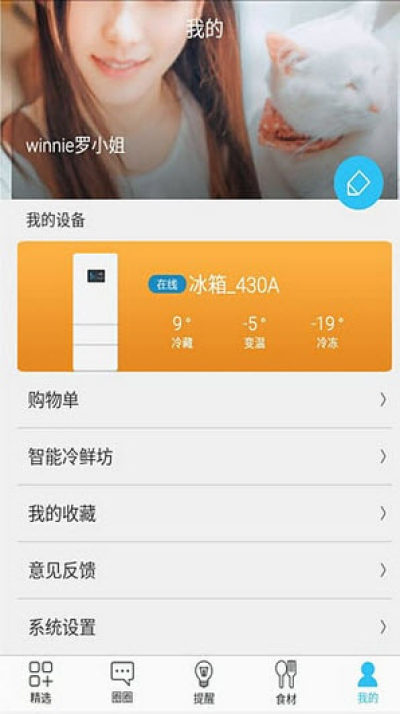 4.我的:远程调控冰箱温度、模式,让你即使身在他处,也可轻松掌控。