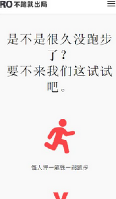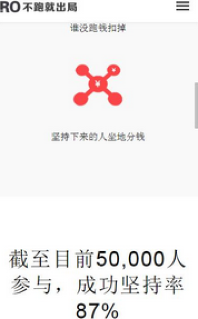 想跑步但难以一个人坚持的朋友:每人拿出一笔钱作为监督契约金,一起跑步,谁没跑则扣除当日契约金,坚持下来的跑友平分这笔契约金,没有任何借口,不跑就出局。微信搜索公众号“不跑就出局”一键加入挑战计划!