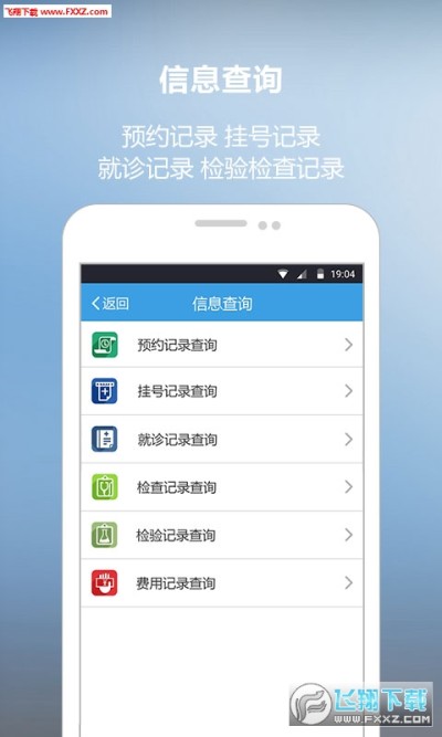 【信息查询】患者可以通过客户端轻松查阅检验检查报告单,免去了往返医院带来的不必要的麻烦,并且客户端还提供患者查询预约记录、挂号记录和就诊记录。