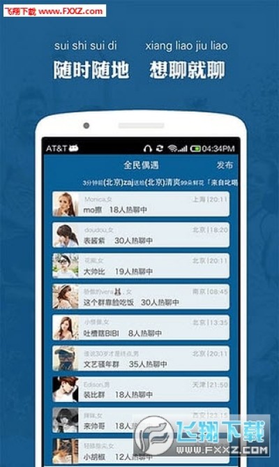 这个夏天,加入你附近的组织一起嗨!同城聊天交友神器,上面聚集着热情友好爱聊天爱幽默的小鲜肉、大叔、女神、小清新、二次元、神仙姐姐等等;只有你不想约没有约不到。