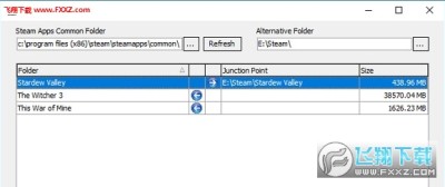 在「Alternative Folder」处选择你要迁移的位置,再在下面选择要迁移的游戏。
