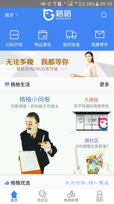 格格快递 基于社区智能快递柜的配套APP,包含收快递、寄快递、手机开柜、小区开门等功能;安全快捷、有效的解决用户出门在外收取快递的问题。