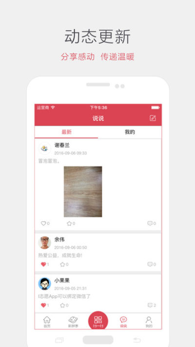 6.交流分享:志愿者组织及志愿者可随时在PC端和移动端分享活动信息、心得体会等。