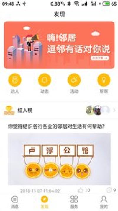 逗邻是一个给居民邻里提供的一个生活便利的app,让各位在这能够更好的促进邻里的关系,打造一个不一样的社区环境,来下载吧。