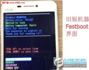 1、长按音量下加电源,使手机进入如图fsatboot刷机模式