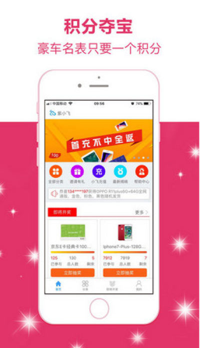 流量充值1元送1积分,一元夺宝、豪车,名表带回家!