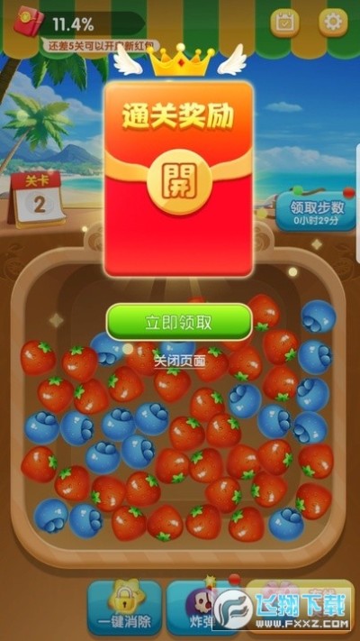 1.玩家通过点击屏幕上的相邻水果,将三个或三个以上相同的水果消除,获得分数和奖励。