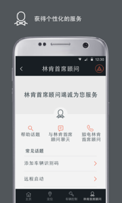 以林肯智能移动科技为核心,打造以您至上的高品质服务和轻松自在的人性化体验。 林肯之道APP(1)不仅让您一手掌握“我的车辆”、“信息”、“定位”等便捷功能,还将为车主提供极其灵活且更加人性化的服务。