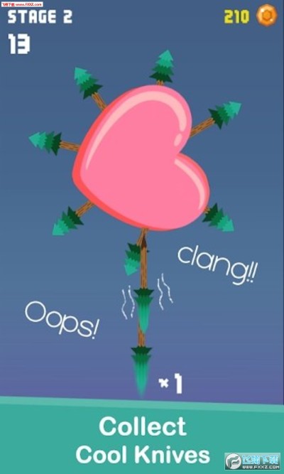 - 点击屏幕的飞刀命中目标。要小心,不要让刀触摸障碍,尖峰和其他刀片,否则你会失败