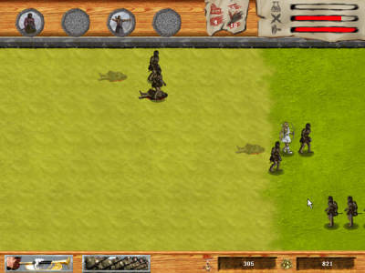 在地图中间区域会随机生成一些金矿,这将是经济的很大一部分来源。只要和单位接触,就会移交控制权,分别以蓝旗子和红旗子表示双方。