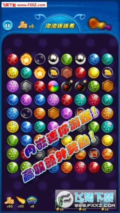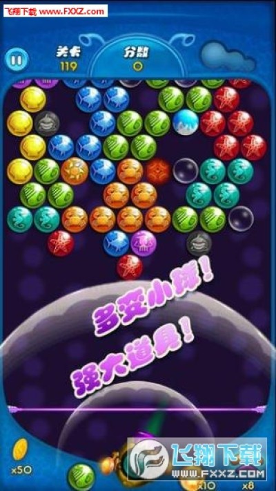 * 精心设计、多达二十余种的各色小球和强力道具,游戏爽翻天!
