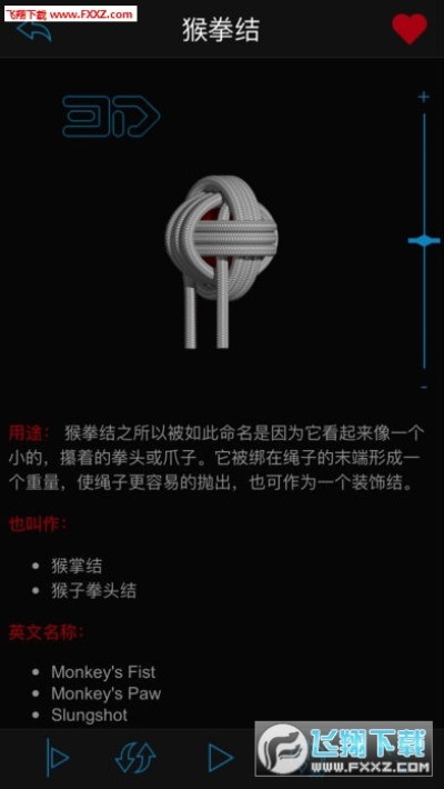 3D绳结,打结界的APP。针对有系绑类工作操作的人员有很大的帮助!最起码你有很多结没见过。