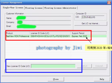 4、把上图红方框内生成的注册码,拷贝到下图的“New License ID Code”内,点击“AddLIC”就大工告成了。
