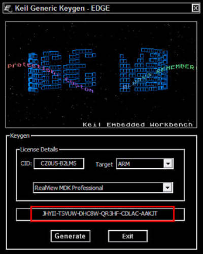 3、把MDK4.12的CID编号粘贴到下图CID里面,点击“Generate”。