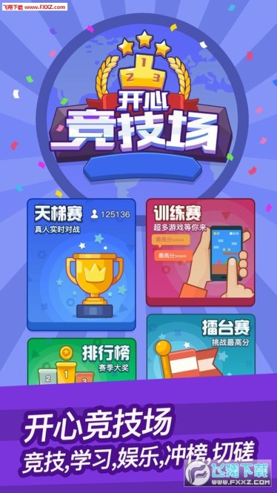 随时随地都能想玩就玩,几分钟一局轻松无负担,实时反馈你的排名,和网友在线比拼,宛如“头脑王者”一样的答题机制,考验着你的脑容量,还有各种各样的单机小游戏,消磨你的无聊时光,还收集了众多有趣好玩的休闲游戏,可以自己玩,可以对战,可以打擂台,还可以参加万人竞技成为城市霸主,受万人景仰,赢取大量金币。给我一分钟,还你大乐趣,马上开启你的开心竞技场!