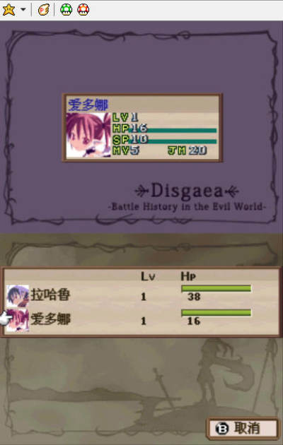 本作针对NDS双屏幕的特殊性设计了双画面情报显示,这比PS2或PSP版更加直观。战斗时俯瞰战场全貌的“垂直试点图”在上屏幕显示,斜试点真实战斗场景则在下屏幕显示,玩家可以更容易的掌握战场情报。决色状态画面也通过上下分屏显示。