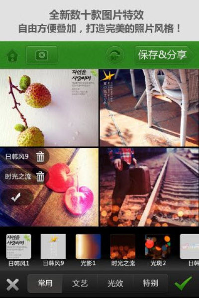 2、照片自动美化处理:可以对照片即时进行颜色处理、特效、边框等美化功能,超过40种后期自动“PS”功能,尤其适合喜欢摄影、捕捉生活点滴、喜欢LOMO、连拍、抓拍等用户群;