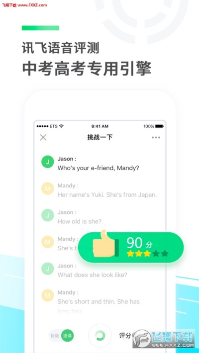 E听说是一款中学英语“听说读写”全学科备考产品,针对各地考纲精准命制内容,采用官方评测技术(科大讯飞语音评测技术和手写作文批改评分技术)精准评测,基于讯飞大数据智能计算技术打造智能作业平台、个性化学情图谱等领先功能,放心可信赖。