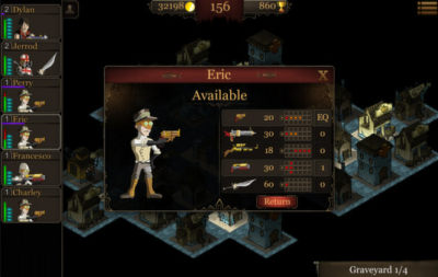 游戏中的小镇是随机生成的,在住宅中可以找到猎人,武器店可以获得新的装备,墓地可以提升经验值等等,不过探索时很可能会遭遇到敌人,如果敌人攻破了你的防御分数就会降低,当分数归零时游戏结束。