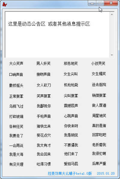 软件内包括群众笑声,尖叫声,掌声,婴儿笑声,狗叫声,打呼噜,打喷嚏,乌鸦飞过等等各种音效在内!