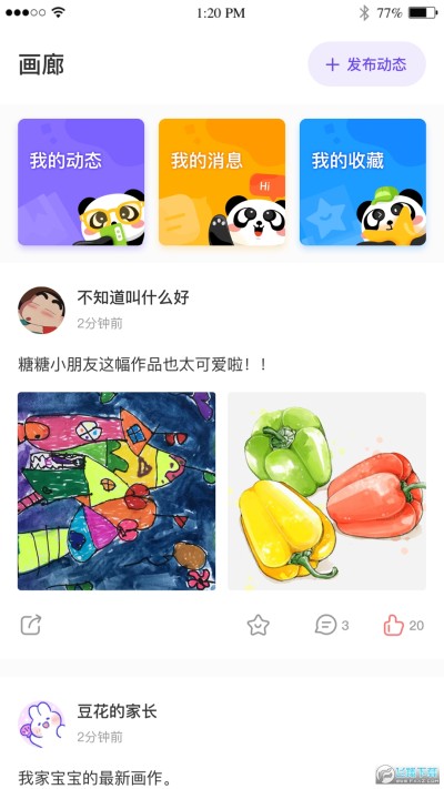 3、作品:上传了绘画作品,听听老师怎么说,和老师即时沟通无障碍。