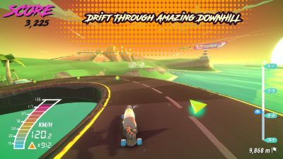 掌握长板漂流,从山脉到整个城市,尽享复古波浪风格和令人震撼的合成波音乐声轨的美感。在整个旅程中,玩家将引导Foxy执行rad技巧,跳下坡道,同时避免汽车和多个障碍物。沿途收集Foxy零食对于在Bob的滑板店兑换物品和装备很重要,在那里,玩家可以自定义Foxy的服装和长板,以更好地适应他们的个人风格。