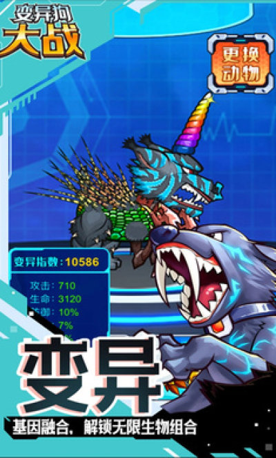 变异狗大战无限基因版是一款卡通风格的休闲竞技类手游,游戏里玩法们可以自由的养成小狗,收集各种基因来强化自己的小狗,还可以造成不同的外观变化,上百万种生物可以组合,喜欢这款游戏的小伙伴快来试试吧!