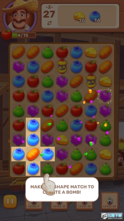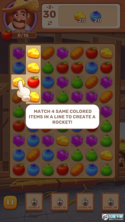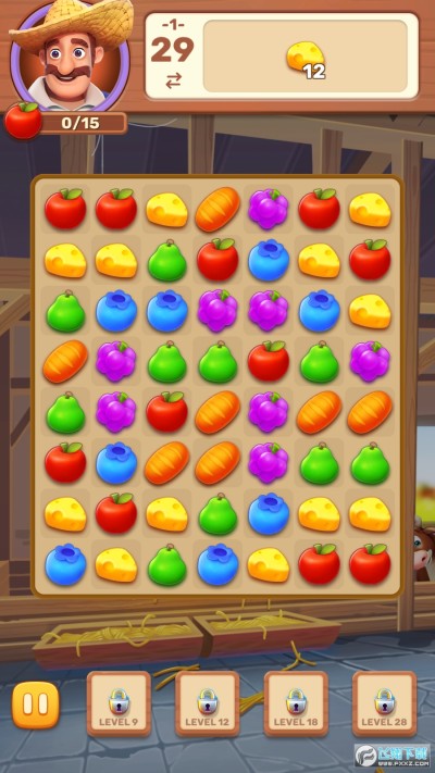 完全免费下载和玩,Town Harvest Match 3 是最好的农场配对 3 游戏!