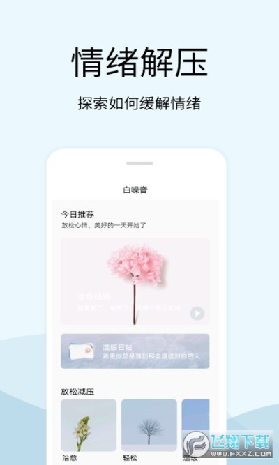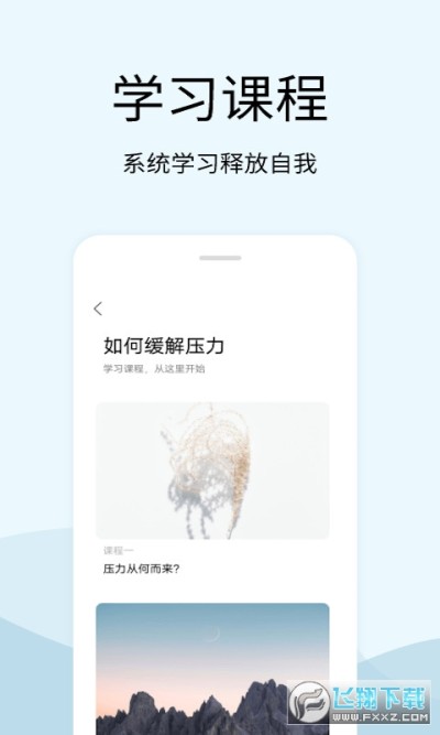 2、应用内提供了自然的声音、轻松的音乐、优美的图片及缓解压力的课程;