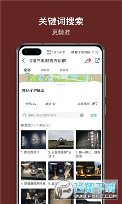 三星堆讲解app,广汉三星堆博物馆参观必备的智慧导览软件,语音讲解,输入文物编号或者扫描二维码,轻松匹配文物语音讲解,更快了解文物相关信息。