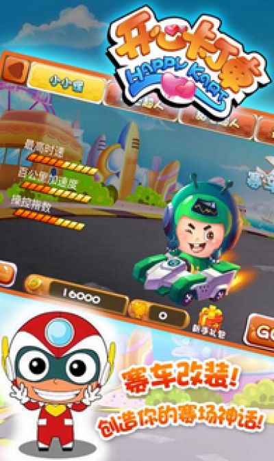 2015,喜气洋洋,超跑盛装,开心来袭。。。。 8大赛车:开心超人、变化无穷、各具特色 14大关卡:城市、沙漠、海滨、空中楼阁、配合5大天气、享受飞一般的感觉 4大模式,玩法多样 道具战:攻守交互、谁与争锋 淘汰赛:争分夺秒、一日千里 障碍赛:巧奔妙逃、寸步难行 金币赛:无限金币、拿到手软 游戏特色道具装备:导弹、地雷,加速、防御,前可攻后可守,更有超级装备,秒杀全场 PK挑战:联网挑战、PK复仇,好友单挑、引无数英雄竞折腰。