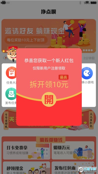 新人注册就送现金红包,随时可提现,轻松赚钱就在挣点呗。