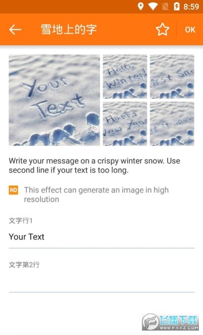 4、有着非常出色的雪地字体,无论用户输入什么文字或者是符号,都会有着真实的效果。