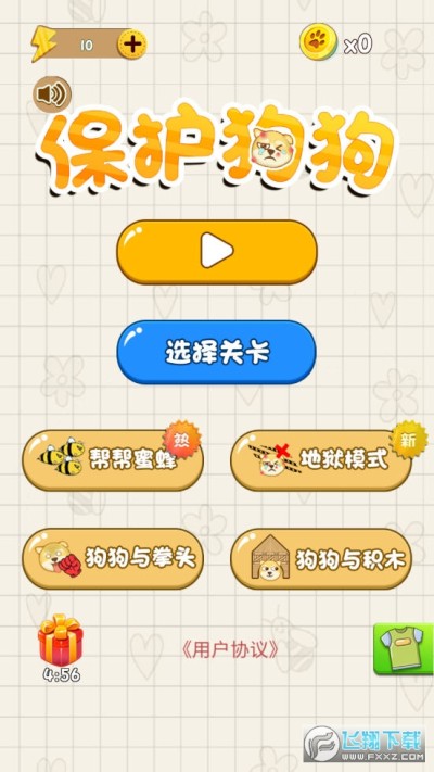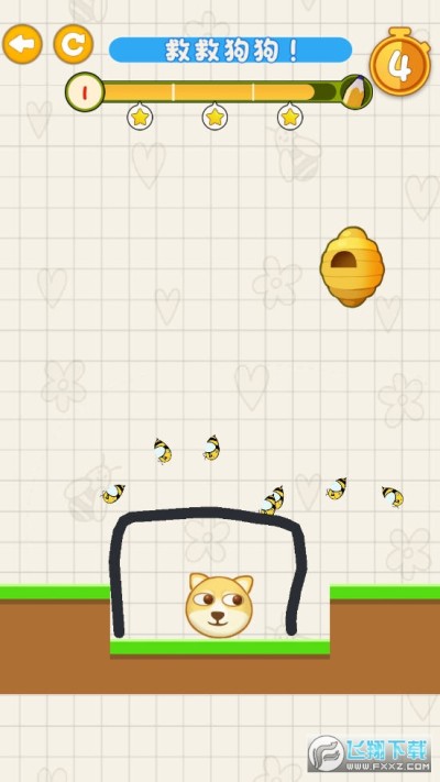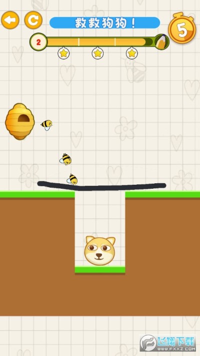 1、非常魔性欢乐有趣的拯救狗狗的游戏,防止狗狗被蜜蜂叮咬。