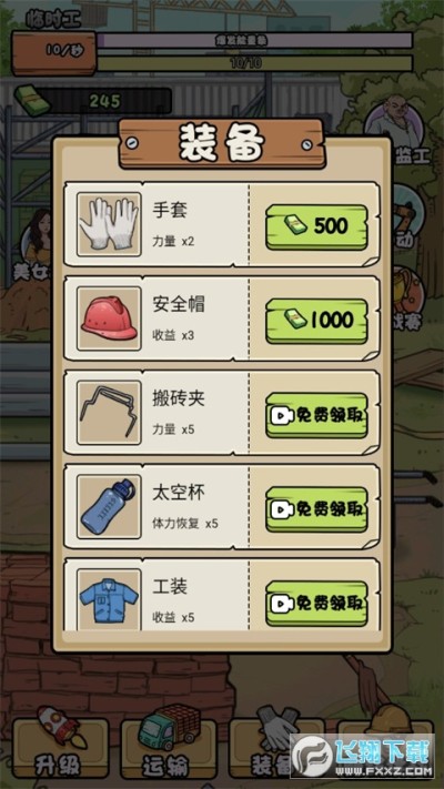 通过完成一系列任务并增加工作量可以获得更多报酬,获得各种设备,在持续的训练下提高搬砖的实力,获得执行任务的丰富回报。