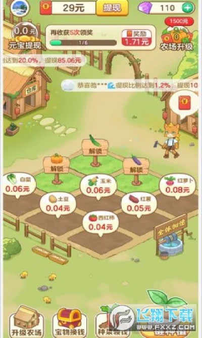 快乐农场小屋红包版是一款休闲养成赚红包游戏,游戏玩法简单轻松,玩家可以自由开发你的农场,在这里完成游戏任务即可领取红包奖励,海量精彩红包活动等你参与,轻松赚0.3,对游戏感兴趣的话不妨点击下载试试!