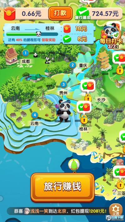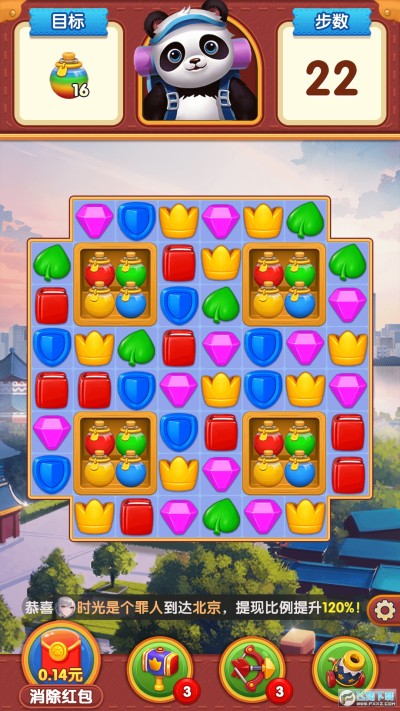 熊猫爱旅行红包版下载官方最新版是一款融合了消除玩法的赚钱领红包游戏。玩家需要在有限时间内消除所有物品,以获取积分和红包。同时,游戏还提供了有趣的趣闻,展示了各种熊猫在不同国家旅行的故事。为了帮助玩家更快地完成任务,游戏还提供了各种道具,例如炸弹和变色球。玩家需要巧妙运用这些道具,以快速消除物品并获得足够的积分,顺利通关。