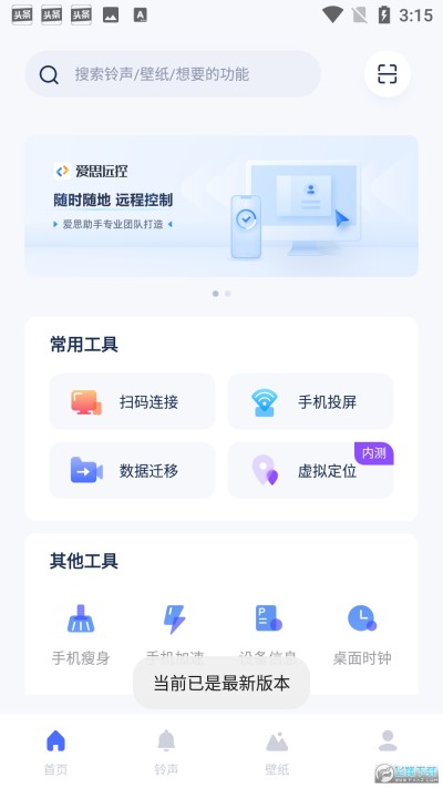 爱思助手加强版app是一款手机文件管理工具,用户可以在线进行体验,超多分类功能等你使用,还可以在线搜索想要的功能,操作简单易上手,手机一键即可进行投屏,对软件感兴趣的话不妨点击下载试试!