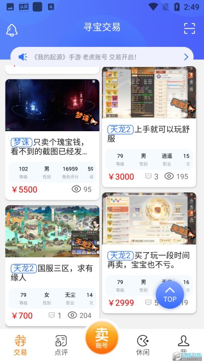 寻宝网交易app是一款由完美世纪官方出品打造的账号交易平台,用户可以在线自由进行账号交易操作,海量热门游戏在这里都能找到,还有超多精彩活动等你参与,随时上线领优惠,对软件感兴趣的话不妨点击下载试试!