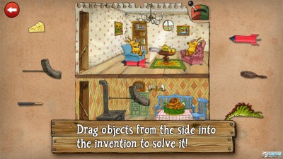 帮助老人佩特森和他的猫芬杜斯建立他们的惊人发明!应该包括哪些物体,它们在机器中的位置?将零件拖放到正确的位置,然后观看发明!一个有趣的教学应用程序,可为所有年龄段的儿童教授逻辑并激发创造力。
