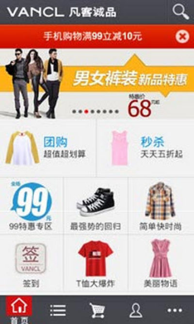 这是凡客诚品的手机客户端,用户朋友可以通过它来在线购买凡客的各种商品,如男装、女装、童装、鞋、配饰和家居等,其操作也非常的方便,随时随地掏出手机,想买什么就买什么,感兴趣的朋友快来下载使用吧!
