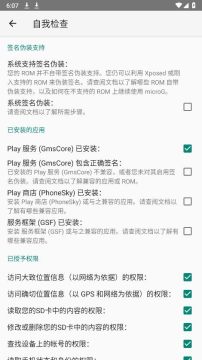 重启后第一次进入 microG setting 时,点击 Self-Check 会提示你进行授权,存储/电话/通讯录/定位等权限.直接授权即可